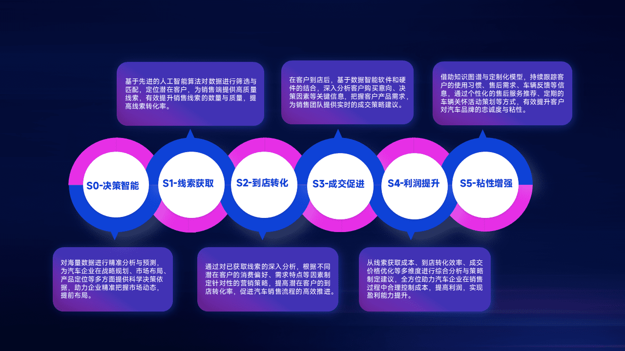 通过拓宽潜在客户来源、、、优化线索分配并提高到店转化率,,,以增强销售效率。。同时,,,利用线索数据不断优化分析模型,,有效提升转化率,,,,扩大营销影响力。。。。